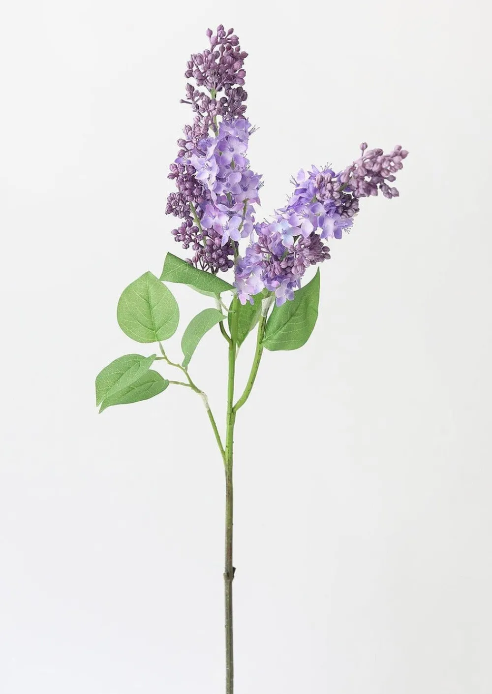 Find high-quality artificial spring flowers, like this striking lavender and purple fake lilac stem with green leaves. Simply style a few of these branches in your tall vase to enjoy lilacs every day.
