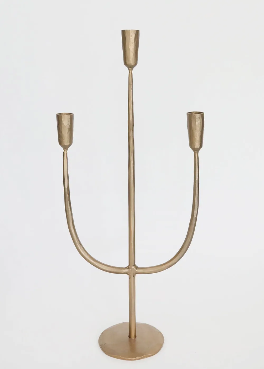 Find candle holders for your table centerpieces like this beautiful metal candelabra with an antique gold finish. It has a simple, classic look that elevates both wedding tablescapes and holiday decorations.