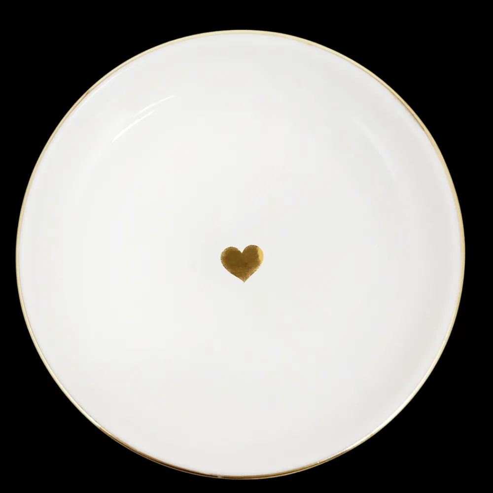Keep your jewelry and small treasures beautifully displayed with our Gold Heart Trinket Tray. This ceramic catch all tray features a simple, chic gold foil heart design, making it the perfect ring dish for your dresser, vanity, or nightstand. With its clean and classic look, this small trinket dish is ideal for storing rings, earrings, and other delicate pieces – a thoughtful addition to any room and a sweet, practical gift.