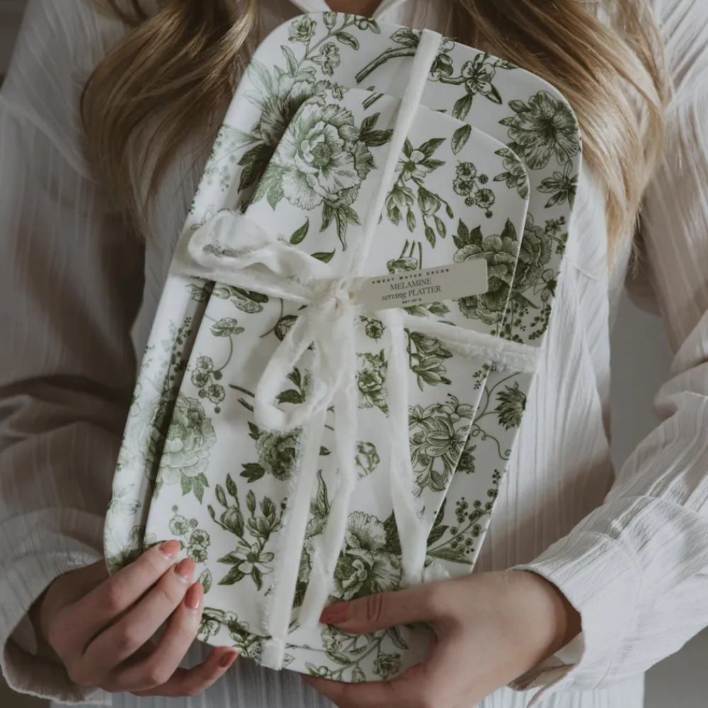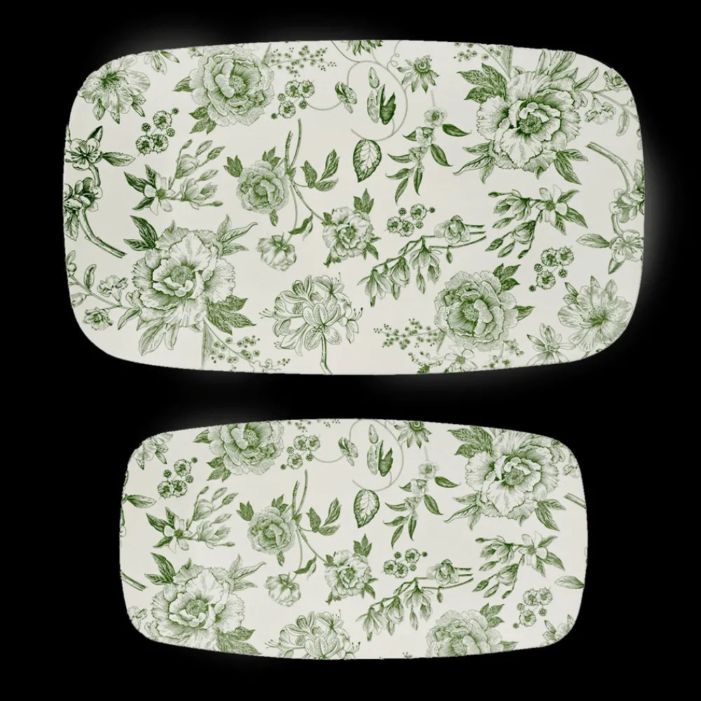 Bring fresh charm to every gathering with our Set of 2 Green Delft Melamine Serving Trays. Featuring a vintage-inspired floral pattern in soft green tones, these lightweight, durable charcuterie trays are perfect for spring brunches, garden parties, or entertaining year-round.